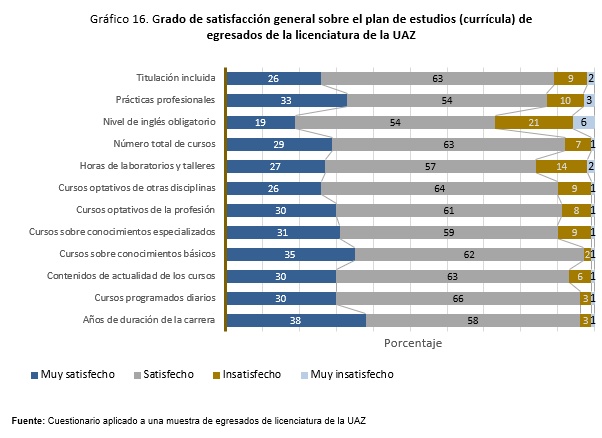 El grado de satisfacción general sobre el plan de estudios (currículo) de los PA de Licenciatura de la UAZ, obtuvo los siguientes resultados: